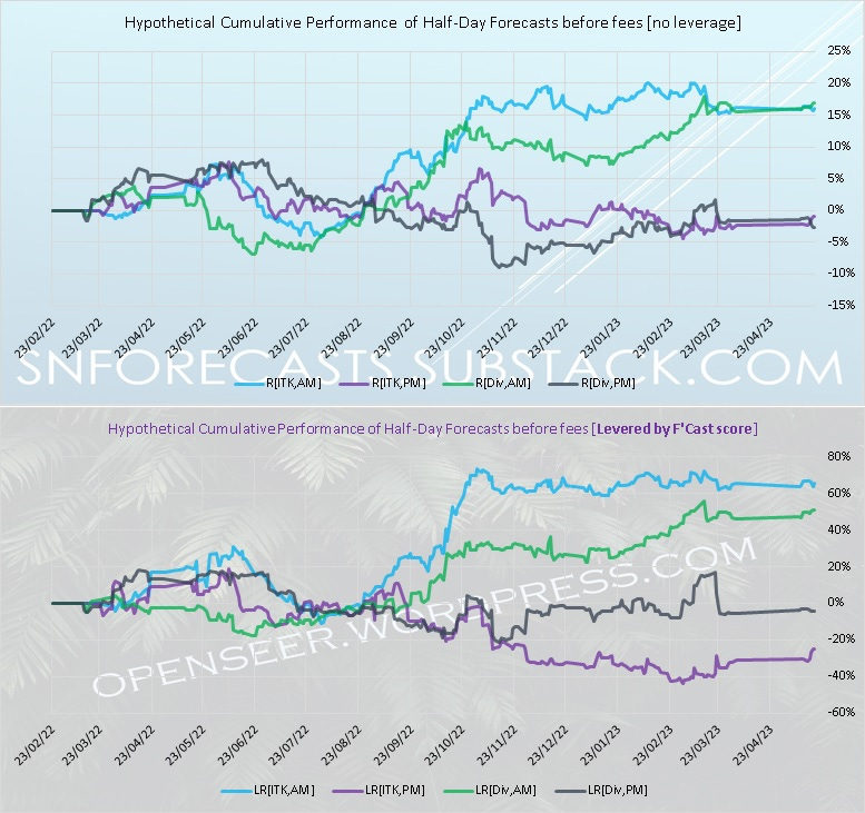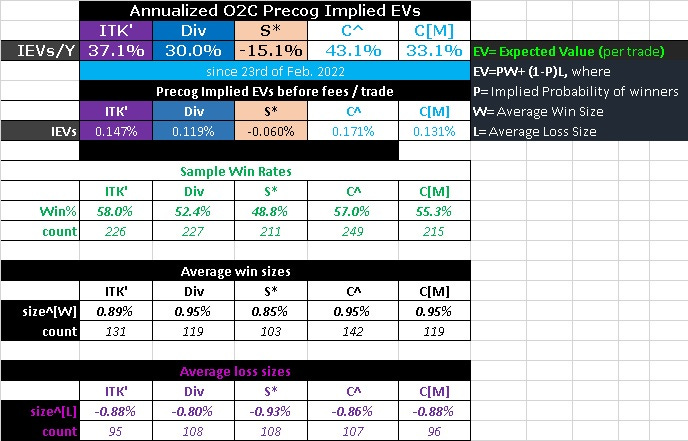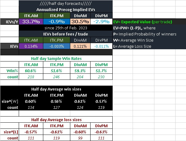 *Since the aim of the forecasts is to produce +EV (Positive Expected Value) biases, I would NOT expect the average win rate to deviate far from 50%. You shouldn’t either, if your goal is to make money from trades.