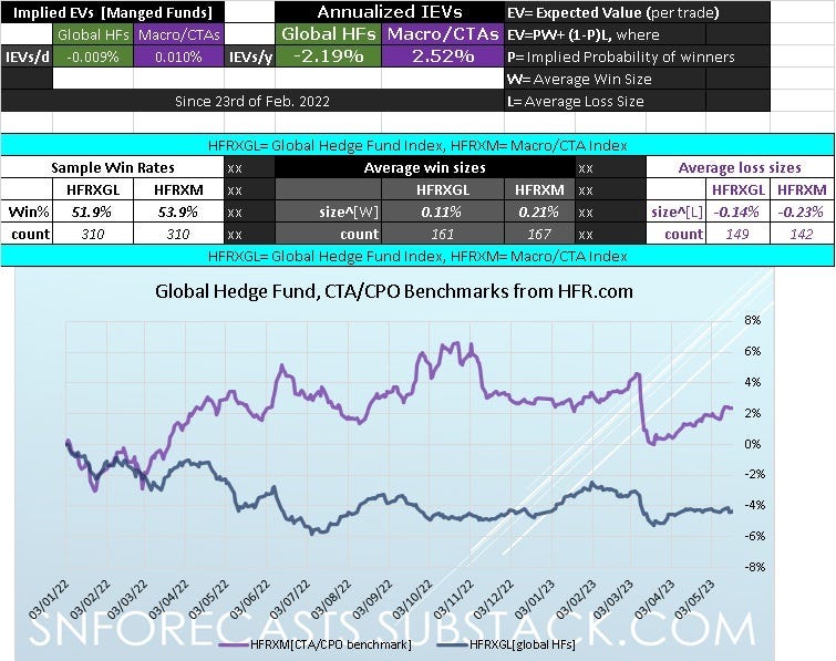 Hedge Fund benchmark IEVs from HFR, for the same period